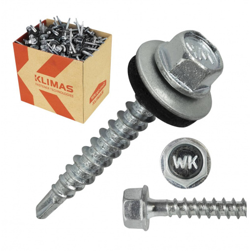 Покрівельний самонаріз Wkret-Met польського виробництва призначений для кріплення покрівельного листа до дерева стропильної частини. Має високу якість метала, довговічну гумову прокладку і стійку фарбу, нанесену на зовнішню частину.